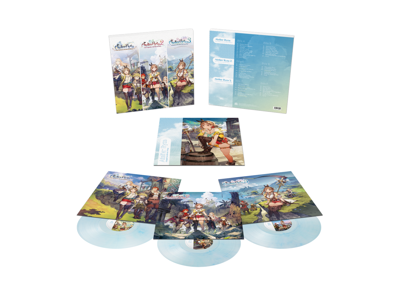 La lujosa caja de vinilos Atelier Ryza incluye 45 canciones en tres LP, incluyendo los momentos musicales más queridos de los tres juegos. Cada vinilo viene en fundas interiores con forro de polietileno, con el lomo completamente ilustradas. El set también incluye un libreto de 24 páginas con arte conceptual, arte de los personajes, letras y notas en inglés y japonés. Todo viene en una caja robusta, lo que convierte a esta colección en un imprescindible para cualquier fan del juego, su arte y, por supuesto, su música, que siempre ha sido una parte fundamental del éxito de Atelier Ryza Secret Trilogy.